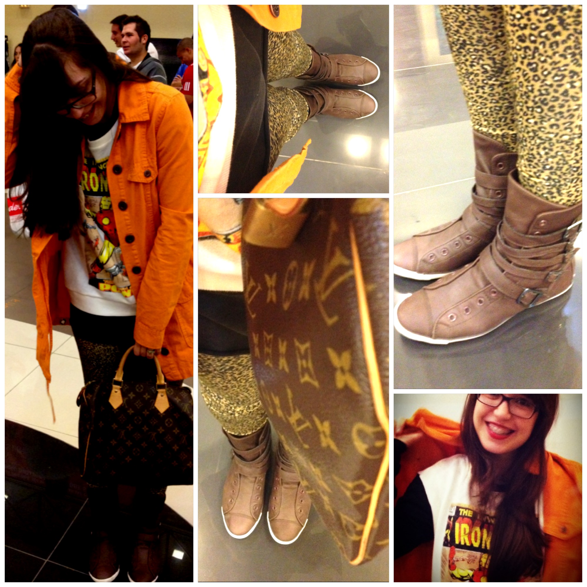 Mas ser preguiçoso não precisa ser largado! A esperança fashion é a última que morre. Então combinei a blusa de moletom do Homem de Ferro com legging de oncinha da Farm e botinha de cano curto da Converse. A legging de oncinha deixou a coisa menos tomboy e mais perua feminina! E, já que eu tava assumindo tudo de geek que há dentro de mim, me pareceu adequado usar os óculos de aro grosso ray Ban (o que foi ótimo, já que a sessão era de madrugada e eu já tinha usado lente o dia inteiro e meu olho tava cansado #dramas).